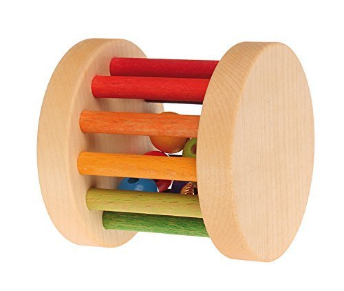 Stimulating sounds & colors will delight baby and encourage early motor skills, Safe for play & teething: Made from natural, sustainably harvested wood and certified non-toxic, water based colors, Little wooden balls and a jingling metal bell tumble inside whenever the wheel is lifted, rolled, or shaken , An excellent newborn, baby shower, or 1-year birthday gift, Also available in a large size in 3 color styles
