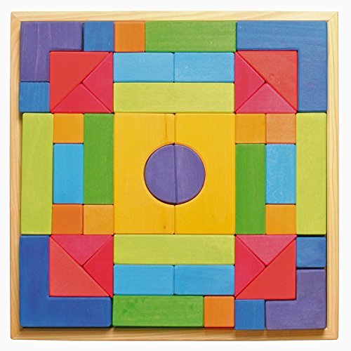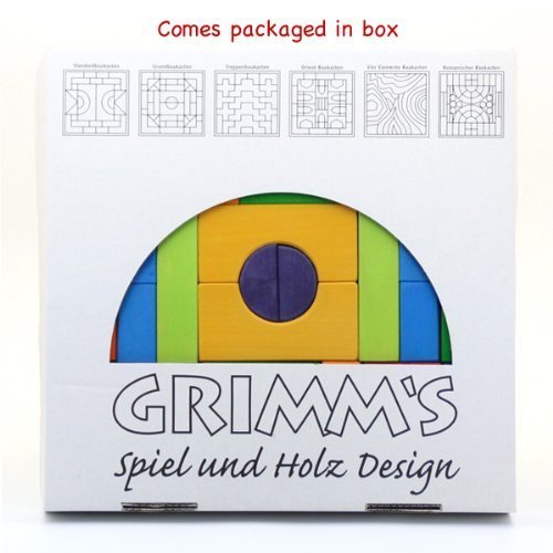 Inspired by the philosophy of Waldorf education, Grimm's toys are designed to help children discover and develop their own creativity and leaving plenty of room for independent, open-ended play and imagination. Minimal finishing allows children to experience the natural look and feel of the wood. Includes wood tray which can be used for storage and as a building platform. All corners/edges of blocks and tray are sanded. Safe for Ages 1 year & up.