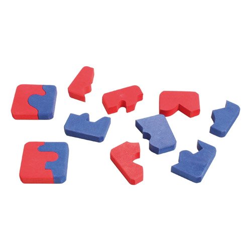 - 赤と青のピースの形合わせパズルです。凸面と凹面を組み合わせて、四角形を作りましょう!