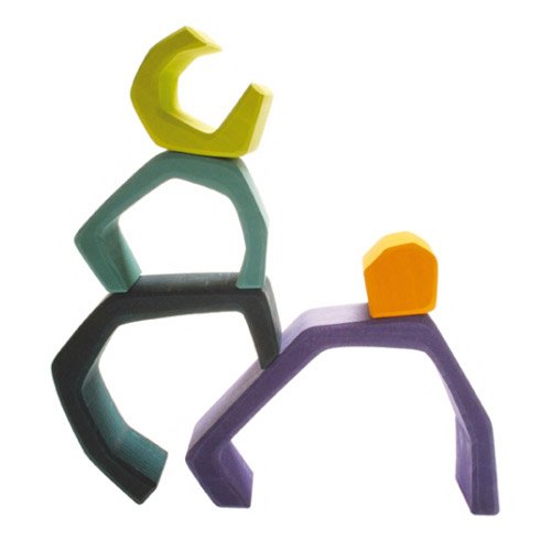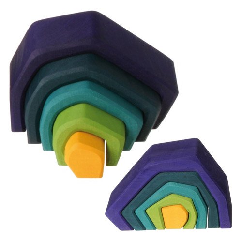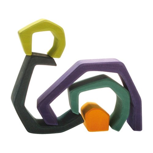 ドイツ・Grimm's Spiel & Holz Design(グリムス社)の大地がモチーフの美しい色彩の積み木です。 一つの木を切ってつくられています。 自然をモチーフとした形の積み木は、子どもたちのインスピレーションを刺激し、子どもたちの想像力の赴くままに積み上げたり、いろいろな造形物が作れます。 他の積み木と組み合わせると、作れる造形物も増えて、遊びの幅が広がります。 橋や、丘、フェンス、シーソー、ゆりかご、トンネルなどに見たてて、お人形遊び・ごっこ遊びにも活用できます。 美しい色彩の積み木は、独特の水性着色料を使用し、厳しい安全基準に基づいて作られていますので、お子さまが舐めてしまっても安心してお使いいただけます。 シュタイナー教育に基づいた知育積み木は、創造性と色彩感覚を高めます。