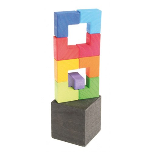 ドイツ・Grimm's Spiel & Holz Design(グリムス社)の美しい色彩のL字型キューブパズル9ピースです。 L字型のパズルピースで、立体的な造形遊びが創造的に楽しめます。 他の積み木と組み合わせると、作れる造形物も増えて、遊びの幅が広がります。 美しい色彩は、独自の水性着色料を使用し、厳しい安全基準に基づいて作られていますので、お子さまがが舐めてしまっても安心してお使いいただけます。 遊び終わったあとは、木製ボックスにお片づけできます。 シュタイナー教育に基づいた知育玩具は、創造性と色彩感覚を高めます。