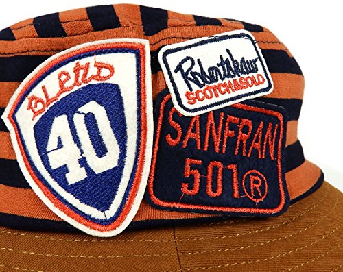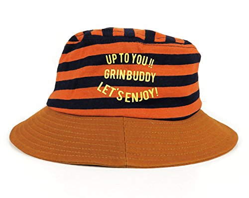 GRIN BUDDY Rugger Hat サファリハット ボーダー×ワッペン☆ 全3色 54cm 綿 コットン キッズ (オレンジ)