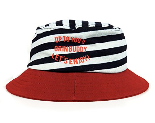 GRIN BUDDY Rugger Hat サファリハット ボーダー×ワッペン☆ 全3色 54cm 綿 コットン キッズ (ブラック)