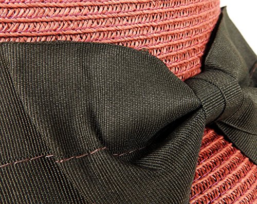 GRIN BUDDY Kids Soft Ribbon Hat つば広 ペーパーハット 大きなリボン 54cm 麦わら キッズ 日除け 紫外線対策 (ピンク)