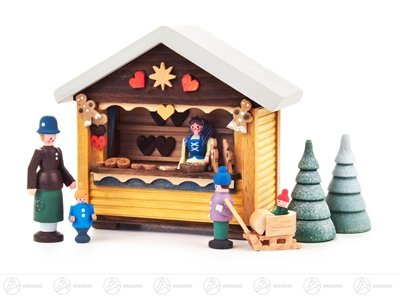 新しいおよそ 9 cm の 4 つの図そして B?umchen 2 つの (7) の高さのミニチュアクリスマスのパン屋のバラック