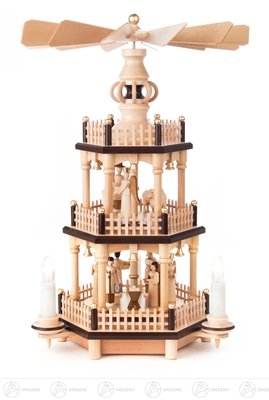 、 2 床は未塗装、誕生場面のピラミッド x の深さの電気照明幅 X の高さ 24 の cmx34 cmx24 cm の鉱石山ピラミッドのクリスマスのピラミッドを台に置きます