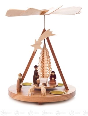 x の深さの茶ライト幅 X の高さのための誕生場面そして先の尖った屋根が付いているピラミッドは、 19.5 cmx26 cmx19,5 cm の鉱石山ピラミッドのクリスマスのピラミッドを台に置きます