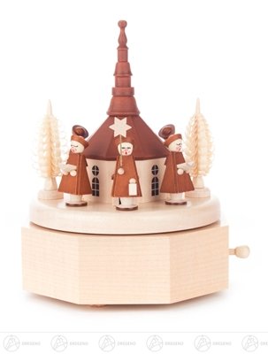 Seiffener 教会が付いているオルゴールのオルゴールおよびキャロルの歌手、図は x の深さの幅 X の高さを新しい 12 cmx15 cmx12 cm 茶色にします