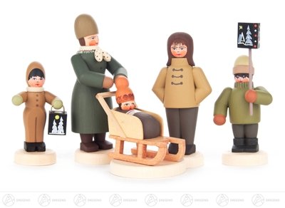 クリスマスのキャリッジおよび 3 人の子供を持つミニチュア Metteng?nger の母は、 x の深さ 3 cmx8 cmx2 cm の鉱石山のクリスマス図木図の 8 つの (2002 年の) 幅 X の高さに刑を宣告します