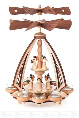 天使、 2 つの版そして x の深さの茶ライト幅 X の高さのための 2 つのインペラーのピラミッドは、 29.5 cmx41 cmx28,5 cm の鉱石山ピラミッドのクリスマスのピラミッドを台に置きます