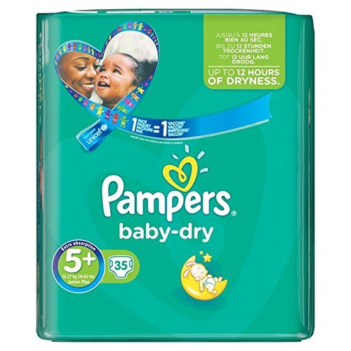 - Pampers Baby Dry Size 5+ (13-27kg) Junior Plus x 35 per pack