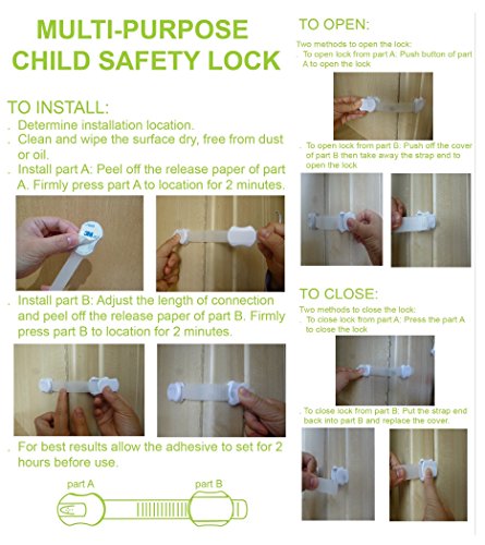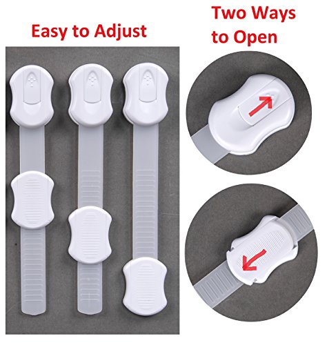 - TWO WAYS TO OPEN AND RE-ADJUSTABLE STRAPS (UNIQUE FEATURE): Our safety locks can be quickly opened in two distinct ways. In fact, the length of the strap can be easily adjusted if you fail to measure it perfectly when you first install it. So there is second go at installing it even if you haven't done it perfectly right the first time. Not all products on the market have this feature.