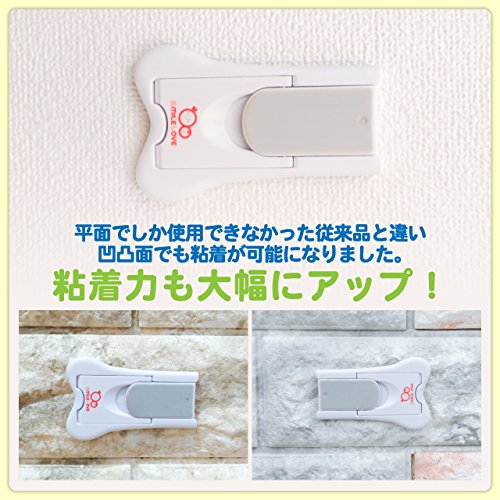 目を離したスキに赤ちゃんがガラス戸を勝手に開けてしまい外に出てしまわないか。 そんな心配を簡単に解消できる製品となっております。 平面でしか使用できなかった従来品と違い凹凸面でも粘着が可能になりました。粘着力も大幅にアップ!ハイハイ対策の事故や怪我防止、セーフティロックとしてご使用いただけます。 ご使用方法:製品をロックしたい窓に貼り付けてストッパーを引き上げるだけでスライドドアをロックできます。戸をあける際にはストッパーを戻してください。 ※製品を問題なくご使用いただくためにはストッパーをたたんだ状態で戸が動かせるように 戸と戸の間に製品が通る厚み5mmの隙間が必要となります。 窓枠のサッシがある窓などはガラス面とサッシ部分に隙間ができるため 使用に問題ございませんがそれ以外でご使用の場合はあらかじめご確認ください。