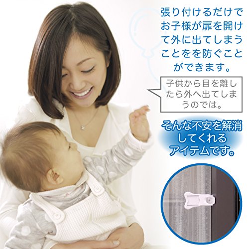 - 赤ちゃんがガラス戸などの開き扉をイタズラで勝手に開けてしまい室内から外に出てしまわないよ うロックで防止する子供用安全対策グッズです。
