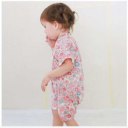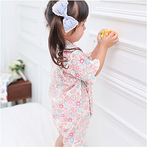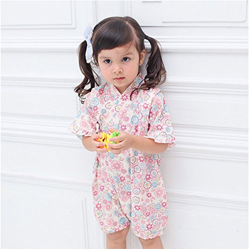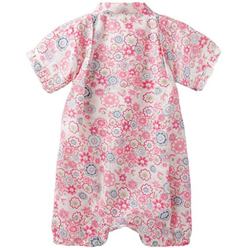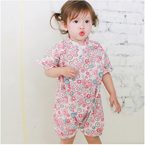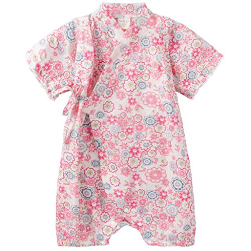 GudeHome ベビー 甚平 浴衣 女の子 和装 ロンパース ショートオール カバーオール 花柄 綿100% お祭り 花火 お祝い ギフト 出産祝い (赤, 70 CM)