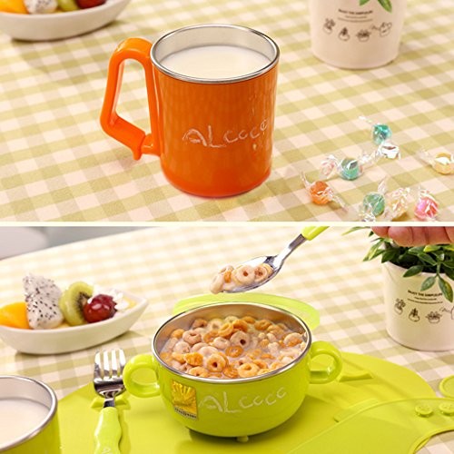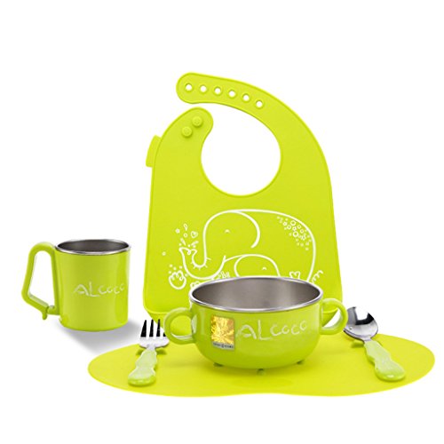 GudeHome ベビー食器セット ご飯茶碗 片手カップ ビブ ベビースプーン ベビーフォーク 子供食器 (グリーン)