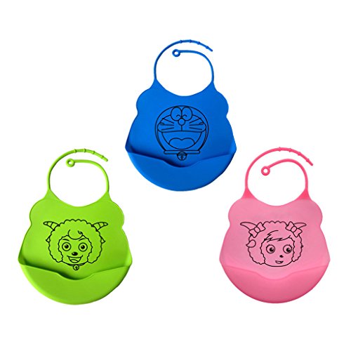 GudeHome 3点セット ソフト 防水性 シリコン製 キュート ベビービブ インファント キッズ トドラー 食事用 よだれ掛け 胸当て ボーイズ ガールズ 調整可能 スナップ開閉式 食べこぼしキャッチャー付き