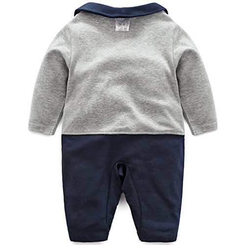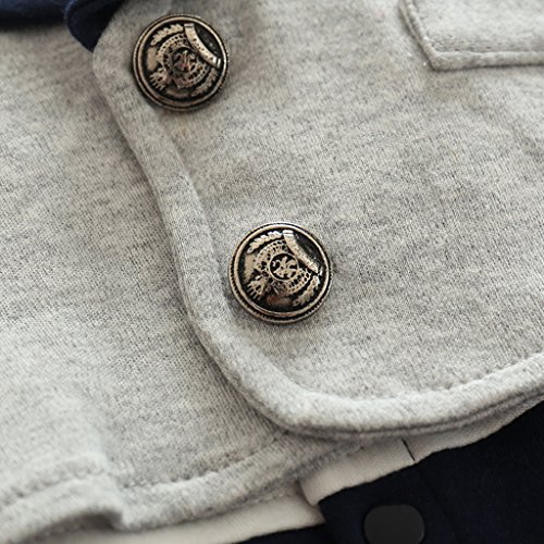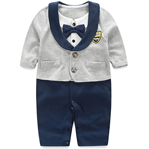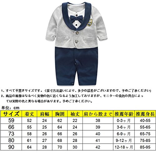 GudeHome ベビーフォーマルカバーオール 男の子 ロンパース 赤ちゃん カバーオール 紳士風 出産祝い 結婚式 七五三 写真撮影 80cm 徽章柄 グレー