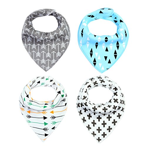 GudeHome 4枚セット ベビー スタイ ビブ よだれかけ 2層タイプ 三角 バンダナ型 スナップ サイズ調整可能