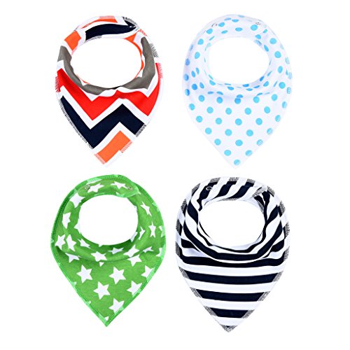 GudeHome 4枚セット ベビー スタイ ビブ よだれかけ 2層タイプ 三角 バンダナ型 スナップ サイズ調整可能