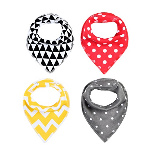 GudeHome 4枚セット ベビー スタイ ビブ よだれかけ 2層タイプ 三角 バンダナ型 スナップ サイズ調整可能