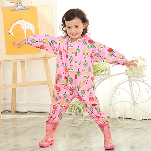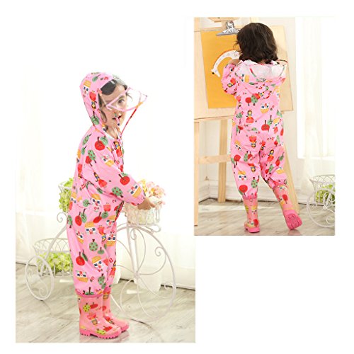キッズ雨具、かわいいキッズレインコート 上下セット 女の子 男の子レインコート ピンク S(75-90cm)