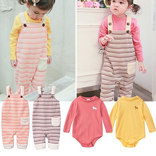 GudeHome サロペット パンツ 2点セット 子供 ロンパース オーバーオール 女の子 オールインワン カバーオール (イエロー 80cm)