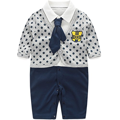 GudeHome ベビーフォーマルカバーオール 男の子 ロンパース 赤ちゃん カバーオール 紳士風 出産祝い 結婚式 七五三 写真撮影 66cm 水玉柄 グレー