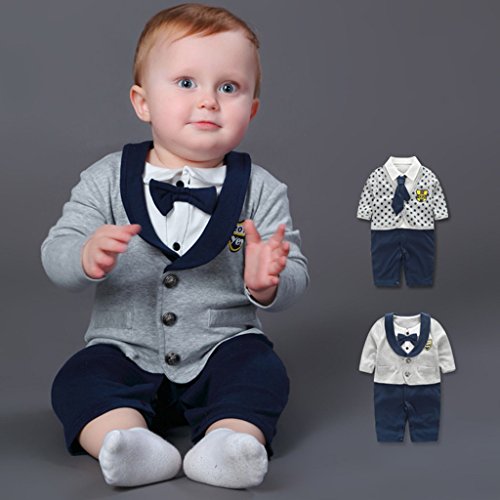 GudeHome ベビーフォーマルカバーオール 男の子 ロンパース 赤ちゃん カバーオール 紳士風 出産祝い 結婚式 七五三 写真撮影 73cm 徽章柄 グレー