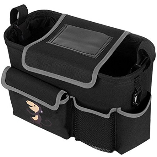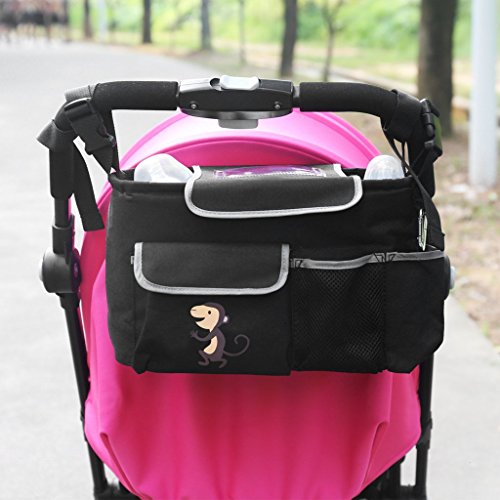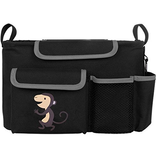 GudeHome ベビーカーバッグ 収納バッグ 多機能小物入れ ベビーカー用 ドリンクホルダー ネット バッグ(モンキー,ブラック)