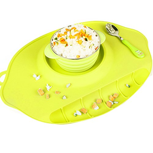 Molded scoop catches food as it falls, and raised outer rim helps contain wet spills;Durable, flexible material can be wiped clean easily and is top rack dishwasher safe;Strong suction cups keep the Tiny Diner in place;Designed for kids to eat directly off the mat, no additional plates to clean;Free from BPA and PVC