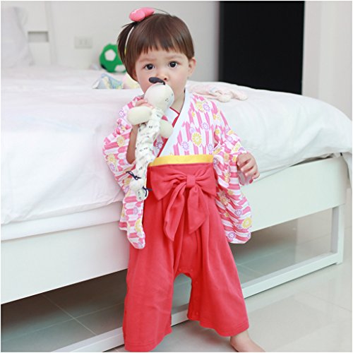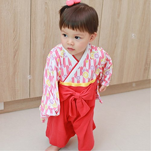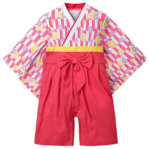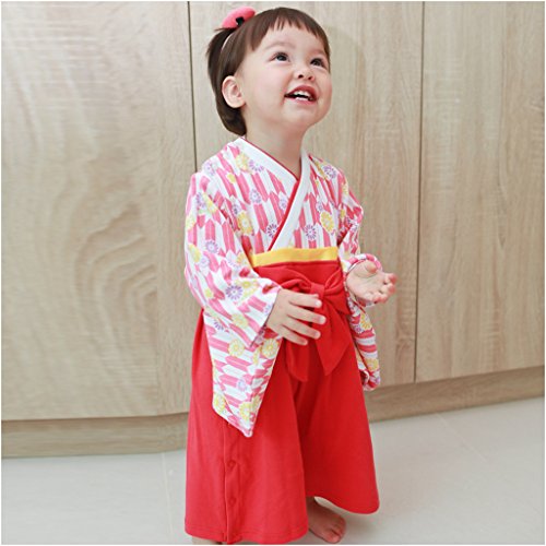 GudeHome 女の子 袴風 カバーオール ロンパース 和装フォーマル 着物 ベビー服 長袖 コスチューム 綿100% (レッド 70cm)