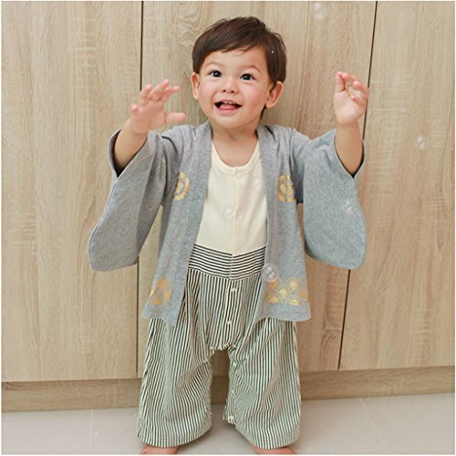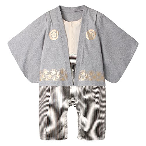 GudeHome ベビー 男の子 袴風 カバーオール ロンパース 和装フォーマル 着物 ワンピース ベビー服 長袖 コスチューム 綿100% 七五三 百日祝い 出産祝い ギフト 結婚式 ブルー 80cm