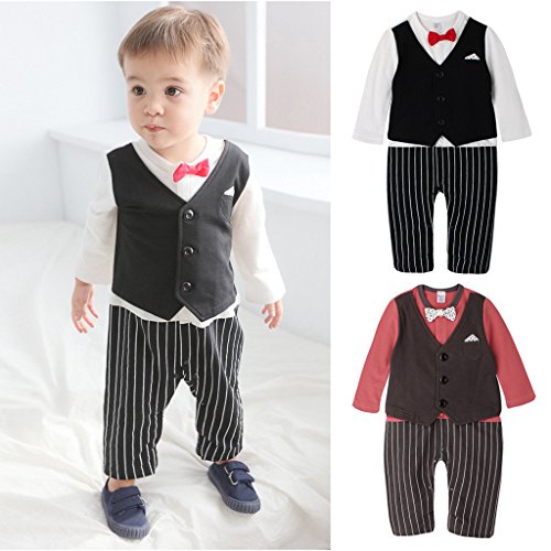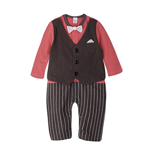 GudeHome 赤ちゃん ロンパース 男の子 カバーオール 紳士風 子供フォーマル服 ベビー 春秋着 蝶ネクタイ付き 子供洋服 出産祝い お出かけ 結婚式 七五三 写真撮影 レッド 90