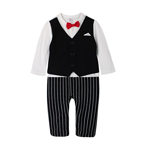 GudeHome 赤ちゃん ロンパース 男の子 カバーオール 紳士風 子供フォーマル服 ベビー 春秋着 蝶ネクタイ付き 子供洋服 出産祝い お出かけ 結婚式 七五三 写真撮影 ホワイト 70