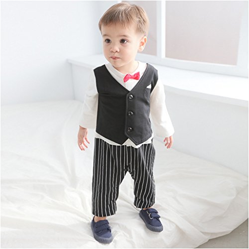 - 蝶ネクタイ付き、着ると紳士になる。かわいい男の子フォーマルロンパース。