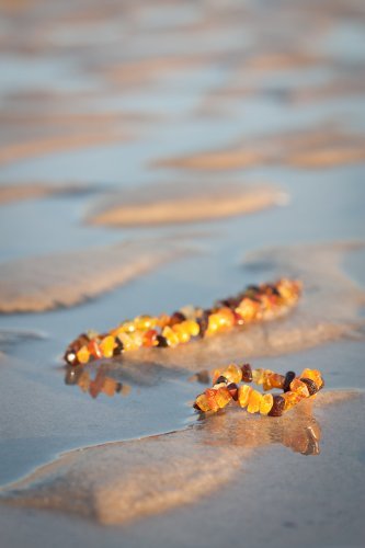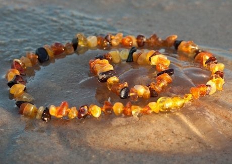 Set of Round shape amber teething necklace and bracelet Length of necklace is 13 inches Length of bracelet is 6 inches ABOUT BALTIC AMBER TEETHING NECKLACE Dear mum and dad, amber teething jewelry is made for wearing not chewing. As with anything else children should be supervised at all times when wearing jewelry and it has to be removed whenever a child is sleeping or unattended! An amber teething necklace is made from Genuine Baltic amber, an organic substance-fossil resin that was produced under natural conditions at least 45 million years ago. The unique substance of amber has anti-inflammatory properties which can be absorbed when it is worn against the skin. Hence, teething necklaces which soothe a child naturally when he or she suffers from teething pain. The actual practice of making amber amulets for children and adults is ancient history. Traditionally, amulets were carved into various shapes and were worn to ward off evil spirits - or just plain bad luck. It's also a very strong possibility that because these amulets also reduced inflammation and discomfort for their wearers. Currently, there are two different thoughts as to why wearing amber on the skin can have soothing and calming effects on teething children. One thought suggests that when amber is worn on the skin, the skin's warmth releases miniscule amounts of healing oils from amber which are then absorbed through the skin into the bloodstream. The other theory is based on scientific findings which have shown that amber is electromagnetically alive and produces significant amounts of organic, purely natural energy.