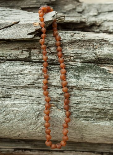 Baltic amber necklace Length of necklace is 13 inches (32-33 cm) ABOUT BALTIC AMBER TEETHING NECKLACE Dear mum and dad, amber teething jewelry is made for wearing not chewing. As with anything else children should be supervised at all times when wearing jewelry and it has to be removed whenever a child is sleeping or unattended! An amber teething necklace is made from Genuine Baltic amber, an organic substance-fossil resin that was produced under natural conditions at least 45 million years ago. The unique substance of amber has anti-inflammatory properties which can be absorbed when it is worn against the skin. Hence, teething necklaces which soothe a child naturally when he or she suffers from teething pain. The actual practice of making amber amulets for children and adults is ancient history. Traditionally, amulets were carved into various shapes and were worn to ward off evil spirits - or just plain bad luck. It's also a very strong possibility that because these amulets also reduced inflammation and discomfort for their wearers. Currently, there are two different thoughts as to why wearing amber on the skin can have soothing and calming effects on teething children. One thought suggests that when amber is worn on the skin, the skin's warmth releases miniscule amounts of healing oils from amber which are then absorbed through the skin into the bloodstream. The other theory is based on scientific findings which have shown that amber is electromagnetically alive and produces significant amounts of organic, purely natural energy.