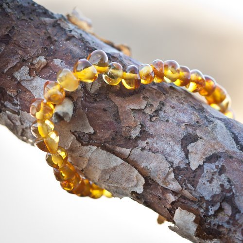 Description. Elastic Baltic amber bracelet for babies. Length of elastic bracelet is 6 inches Dear mum and dad, amber teething jewelry is made for wearing not chewing. As with anything else children should be supervised at all times when wearing jewelry and it has to be removed whenever a child is sleeping or unattended! An amber teething necklace is made from Genuine Baltic amber, an organic substance-fossil resin that was produced under natural conditions at least 45 million years ago. The unique substance of amber has anti-inflammatory properties which can be absorbed when it is worn against the skin. Hence, teething necklaces which soothe a child naturally when he or she suffers from teething pain. The actual practice of making amber amulets for children and adults is ancient history. Traditionally, amulets were carved into various shapes and were worn to ward off evil spirits - or just plain bad luck. It's also a very strong possibility that because these amulets also reduced inflammation and discomfort for their wearers. Currently, there are two different thoughts as to why wearing amber on the skin can have soothing and calming effects on teething children. One thought suggests that when amber is worn on the skin, the skin's warmth releases miniscule amounts of healing oils from amber which are then absorbed through the skin into the bloodstream. The other theory is based on scientific findings which have shown that amber is electromagnetically alive and produces significant amounts of organic, purely natural energy. SHIPPING POLICY All our products are shipped with Air mail to ensure fast and reliable delivery. Delivery might take up to 10 working days.