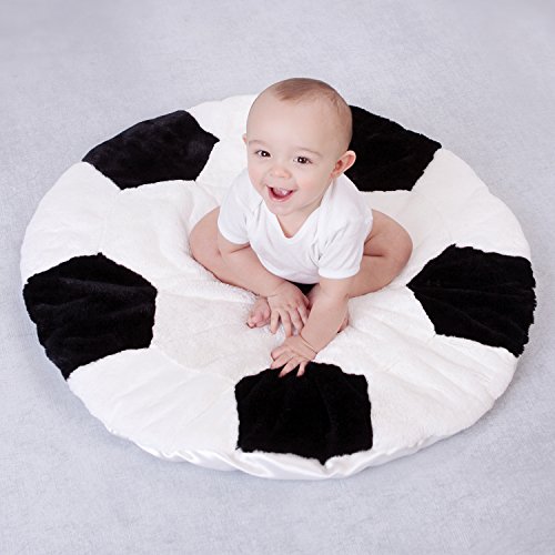 Sport Play Cozy play blanket features reversible design: plush on one side and satin on the other;Two distinct play options: use it on the floor to provide baby with a clean and safe area for tummy time, or use it during naptime as a snuggle blanket;Soccer ball design is perfect for young strikers