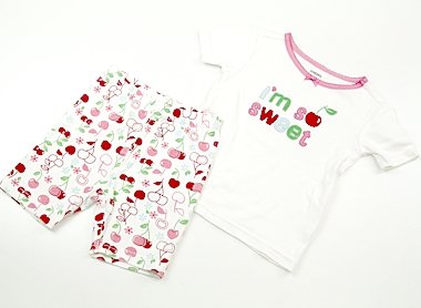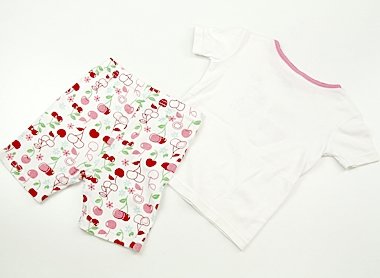 - さくらんぼの柄が女の子らしいパジャマです。薄いシミがありますので、洗い替え用にいかがでしょうか?実際のサイズ表記は3。