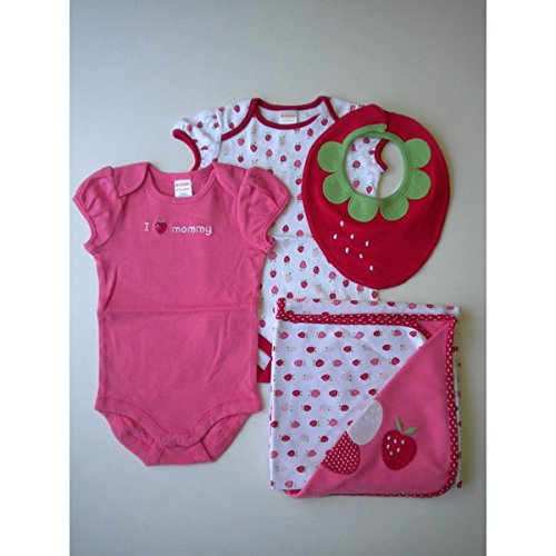 【並行輸入】Gymboree(ジンボリー) ベビー女の子 半袖ボディースーツ2枚&ビブ&リバーシブルブランケット ストロベリースペシャルセット♪ 6~12m(70サイズ)
