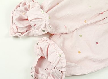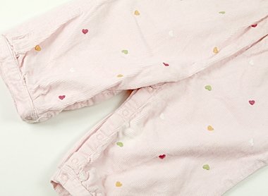 胸から足にかけて広範囲で薄い汚れがあります。コーデュロイ生地。実際のサイズ表記は12-18mosです。柄がすべて刺繍でキュート。まだまだ活躍してくれそうです。