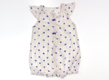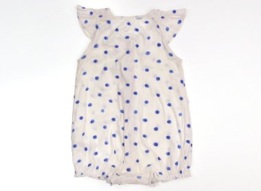 水彩のような水玉が可愛らしいデザイン♪目立った汚れはなくまだまだ活躍してくれそうです。実際のサイズ表記は9monthsです。
