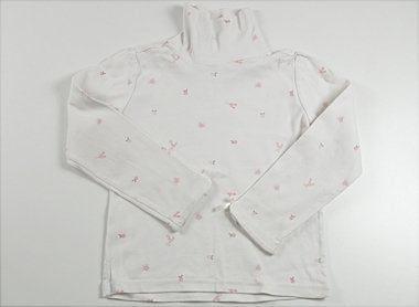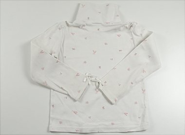 実際のサイズ表記は6です。若干毛羽立ちはありますが目立った汚れはありません。手触りの良いしっかりしたカットソー。