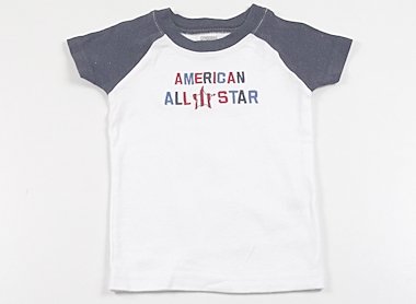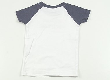 ロゴ入りラグランTシャツ。実際のサイズ表記は18-24mosです。わずかに毛羽立ちがありますが目立った汚れのない良品です。(記名あり)