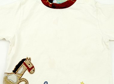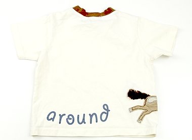 ブランドタグに記名があるため、星を一つ減らしています。サイズ表記がないため、総丈36?・バスト62?・肩幅25?で、だいたい100?くらいかと思われます。前身ごろに中央に薄い茶色いシミがあります。外遊びや洗い替え用にいかがでしょうか?(記名あり)