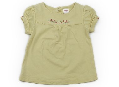 - 実際のサイズ表示は3Tです。Tシャツの下の方にごくうっすらとしたシミがありますが、他に目立つ汚れもなく使用感も少なめでまだまだ普段着として活躍してくれそうです。両肩と胸元の刺繍がとても可愛いです。