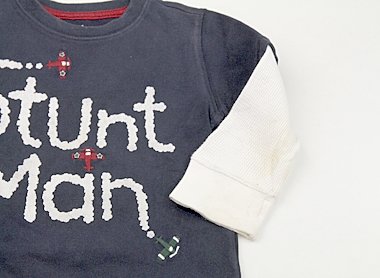 - 両袖に黄色いシミがあります。全体的に色褪せ毛羽立ちがあります。英字部分が少し黄ばんでいます。外遊びや洗い替え用にいかがでしょうか?飛行機が刺繍でできていて可愛らしいデザインです。