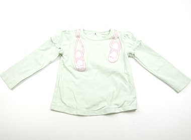 - ダブルスリーブ。やや厚手のカットソー生地。バレエシューズのアップリケがキュート♪